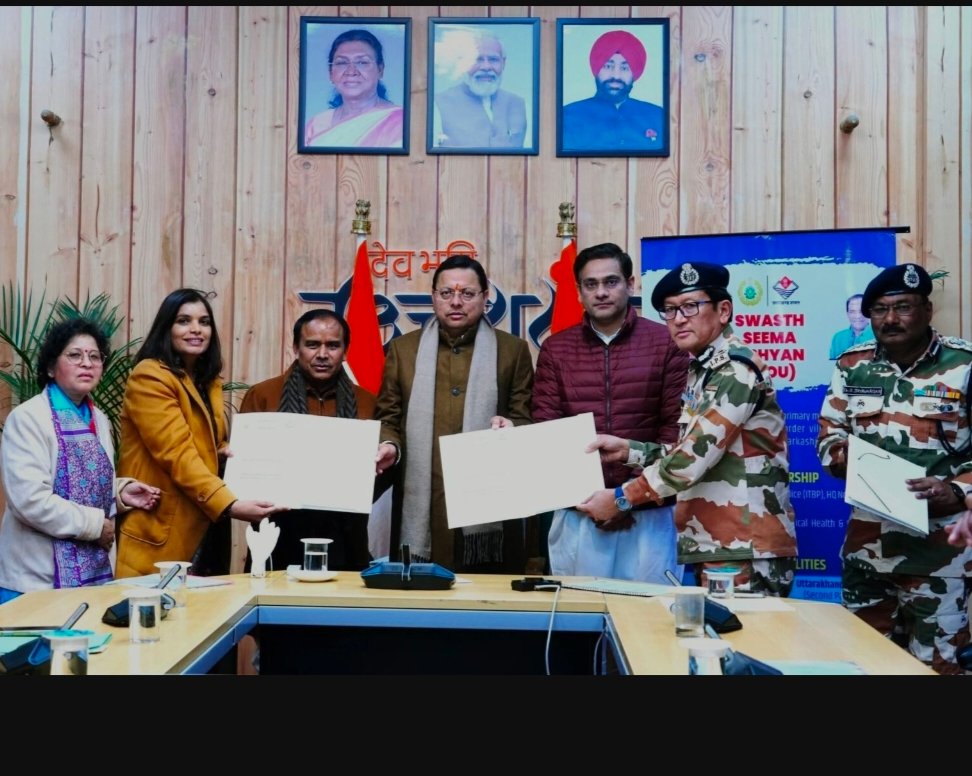 देहरादून:।मुख्यमंत्री पुष्कर सिंह धामी की उपस्थिति में आज उत्तराखंड सरकार और भारत-तिब्बत सीमा पुलिस (ITBP) के बीच एक महत्वपूर्ण समझौता ज्ञापन (MoU) पर हस्ताक्षर किए गए। ‘स्वस्थ सीमा अभियान’ के तहत होने वाले इस समझौते का मुख्य उद्देश्य पिथौरागढ़, चमोली और उत्तरकाशी जैसे सीमावर्ती जनपदों के 108 गांवों में रहने वाले नागरिकों को बेहतर स्वास्थ्य सुविधाएं उपलब्ध कराना है।